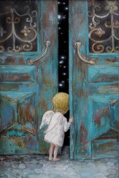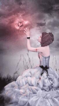 Ein Gemälde eines Mädchens, das einen roten Ballon hält, im Stil eines dynamischen Energieflusses, wundersc
