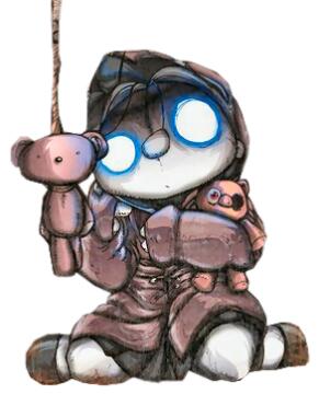 A whimsical creature peeks into the right side of a vertical canvas, its large, curious eyes staring directly