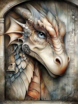 Böse Kreatur, Reißzähne, Regenbogen, im Stil von Nicola Samori