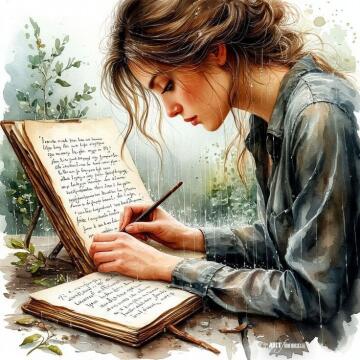 An artistic portrayal of a woman amidst a shower of colorful leaves, her silhouette elegantly accentuated agai
