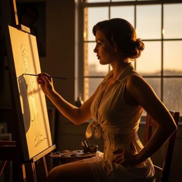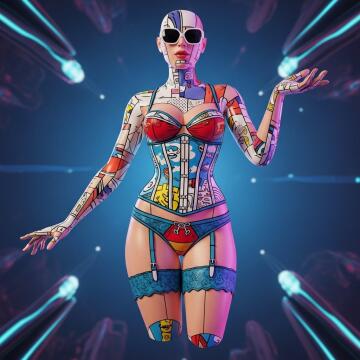 Lebendiges digitales Kunstwerk von einer sexy Frau im Bikini, dynamischen und fließenden Kompositionen, mysti