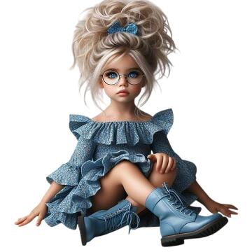Mädchen, kurze goldene Haare, Brille, runde Gesichtsform, Stupsnase