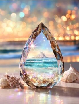 Eine hübsche Frau steht in einem knappen Bikini an einem Strand, Sonnenuntergang im Hintergrund, großes Deko