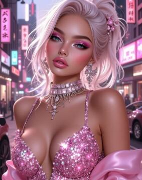 Lebendiges digitales Kunstwerk von einer sexy blonden Frau im Bikini, dynamischen und fließenden Kompositione