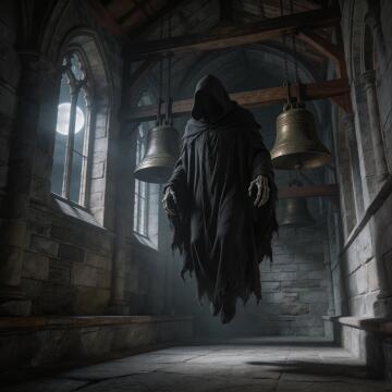 A dementor, levitating ominously. BREAK inside a dimly lit bell tower. vibrant, photo realism, Masterpiece, (8