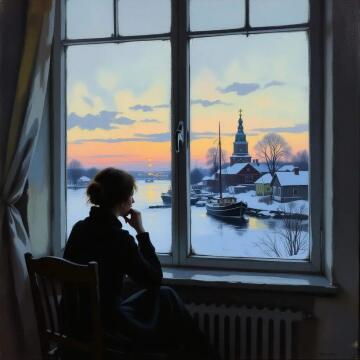 A young woman looks into a golden antique oval mirror, the mirror shows a very old woman with lots of wrinkle