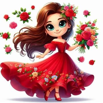 Ein Gemälde eines Mädchens, das einen roten Ballon hält, im Stil eines dynamischen Energieflusses, wundersc