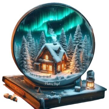 Ein verschneiter Wald im Winter bei Sonnenuntergang, mit schneebedeckten Bäumen und sanften Lichtstrahlen, in