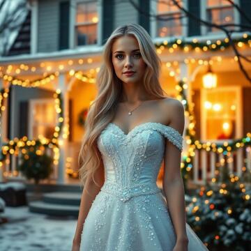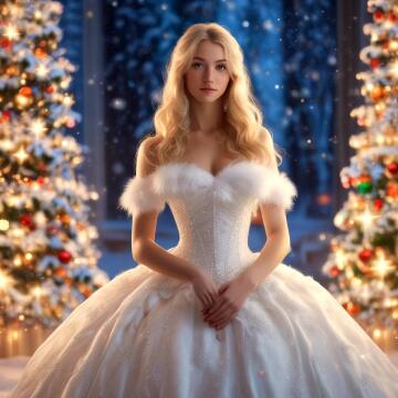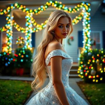 Ein sexy weiblicher Weihnachtskrampus, der in einem geheimnisvollen Wald steht, umgeben von magischen Lichtern
