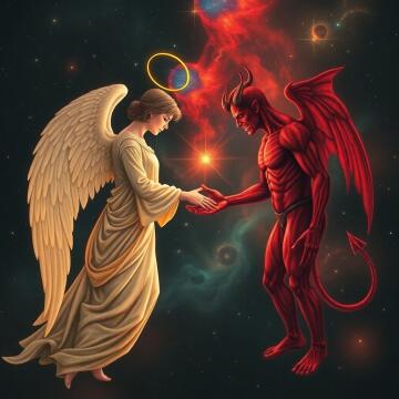 Kosmische Landschaft mit leuchtenden Planeten und Monden, die inmitten funkelnder Sterne kreisen, surreale Fan