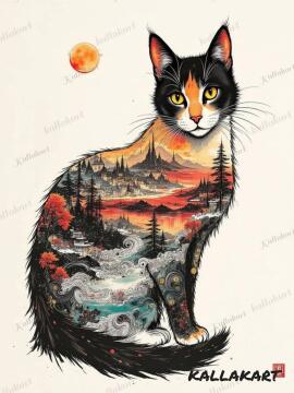 A tiger floating in space, surrounded by swirling galaxies and nebulae, with glowing eyes and cosmic patterns
