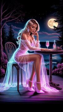Instagram-Foto, eine 45-jährigen Frau im Bikini, schönes Gesicht, Make-up, nächtliche Stadtstraße, Bokeh,