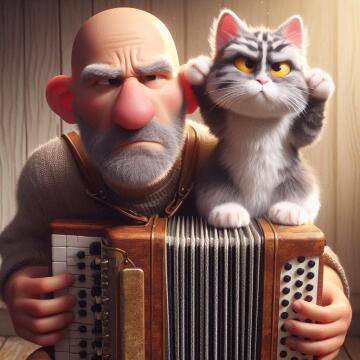 Ganzkörper, (fette Katze), eine Wurst haltend, auf einer Wiese, hyperdetailliert, hyperrealistisch, scharfer