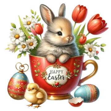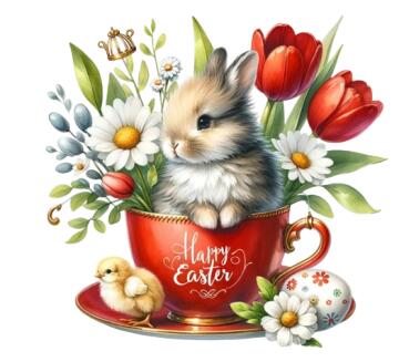 Meisterwerk (Weitwinkelaufnahme), Osterhase bastelt einen Zauberspruch (erstellt ein kleines buntes magisches