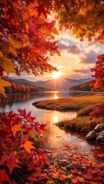 A mythical creature, part stag, part tree, with antlers made of branches covered in fiery red and orange leave