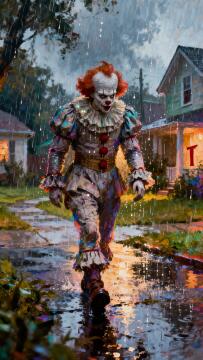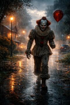 (eine filmische Aufnahme für Baby Joker: 1,4), (3 Jahre alt: 1,4), (gruselig, unheimlich lächelnd, rot, dunk