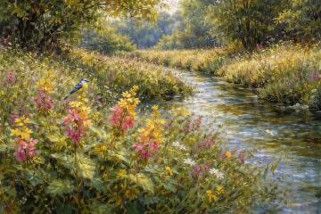 Blumenexplosion im Van-Gogh-Stil, kühle Töne, Impressionismus, lebhafte Pinselstriche, lebendige Blumenexplo