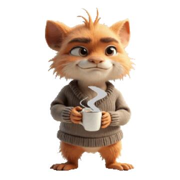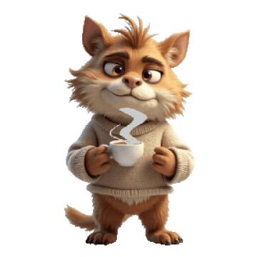 Ein blauer Hund mit einem roten Hut und einem gelben Ball