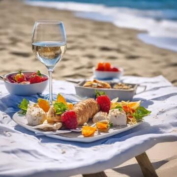 Landschaft, die die Essenz eines Hauchs von nächtlichem Sommer einfängt, sandiger Pfad, der nach unten führ