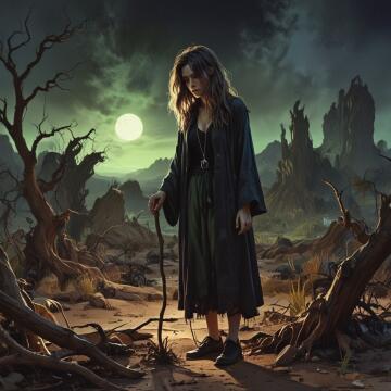 Eine sehr hübsche, verträumte Orchideenhexe ist so blau, dass Drachen ihre Blumen fressen, Stil von Stefanie