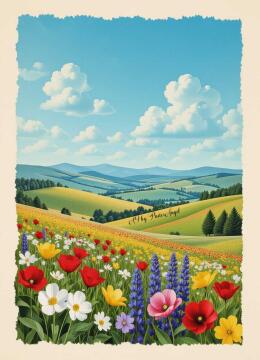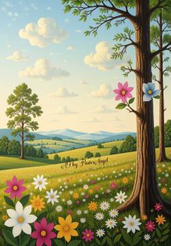 Filmplakatstil, komplizierte Muster, berühmte Kunstwerke von (Eyvind Earle:1.4) und (Dan Mumford:1.4), ein fr