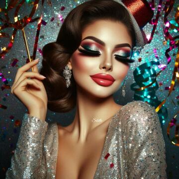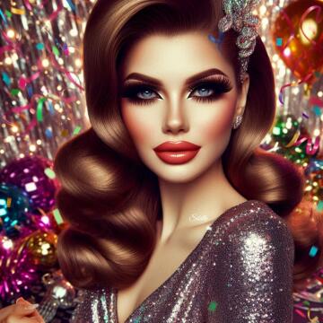 Nerdy Woman with big Boobs in Bikini in an Office in pixar Style